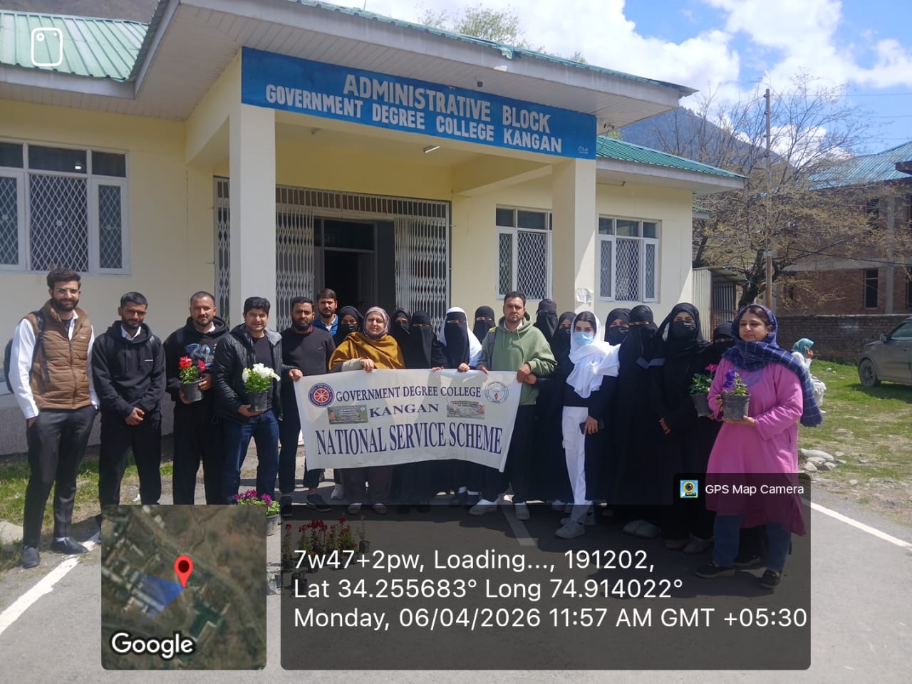 Today on 06-04-2026, NSS Units and teaching and non-teaching staff of Government Degree College, Kangan, actively participated in a Mega Plantation Drive initiated by Honourable Minister Sakeena Itoo. The programme was organized by the college under the able guidance of the Principal, Prof. Sadaf Nazir whose enthusiastic participation motivated every one . The drive was conducted both within the college campus and in nearby areas, including Akhal and Satrina (Kangan). The primary objective of the initiative was to promote environmental awareness, enhance green cover, and encourage community participation in sustainable practices. On the college campus, volunteers carried out systematic plantation of saplings, ensuring proper spacing and care measures. In addition, NSS teams extended the drive to Akhal and Satrina, where they planted a significant number of saplings and trees, contributing to the ecological improvement of these areas. During the drive, approximately 220 plants were planted which include both flowering and non-flowering plants. such as pine, pansy, and petunia, Palm Gazania, Dazie etc selected for their environmental and aesthetic value. The participation of the Honourable Minister added great significance to the event and motivated the volunteers. The event witnessed active involvement, teamwork, and a strong sense of environmental responsibility among participants. The plantation drive not only contributed to increasing greenery but also served as a platform to spread awareness about the importance of conserving nature. Overall, the programme was a great success, reflecting the commitment of GDC Kangan towards environmental sustainability and community engagement.